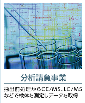 メタボローム解析技術は、これからのライフサイエンス分野の研究開発になくてはならない存在に位置付けられています。 私たちのこの技術力=ノウハウを多くの研究者、専門的技術者の方たちに活用していただき、協働して豊かな生活の実現をめざしています。そのため、どんな問題にもお答えできるコンサルテーション、最先端技術の提供などを実践しています。